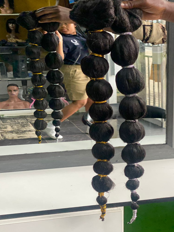 Long Kinky Afro puff Bubble Drawstring Ponytail Natural Black Synthetic Hairpiece Clip on Extension for Kids African Women